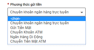Tên ngân hàng : chọn ngân hàng mình đã chuyển nhé.