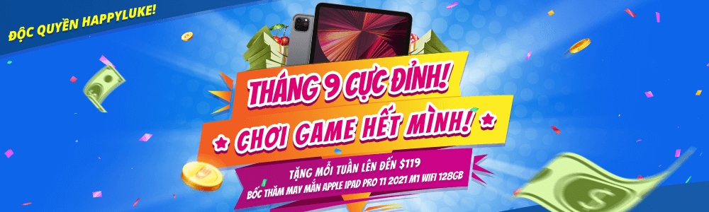 Tháng 9 này nhà cái happyluke chơi lớn thưởng 115K tiền cược miễn phí cùng với siêu thưởng lên tới 90 triệu và vô vàn ưu đãi hấp dẫn khác.